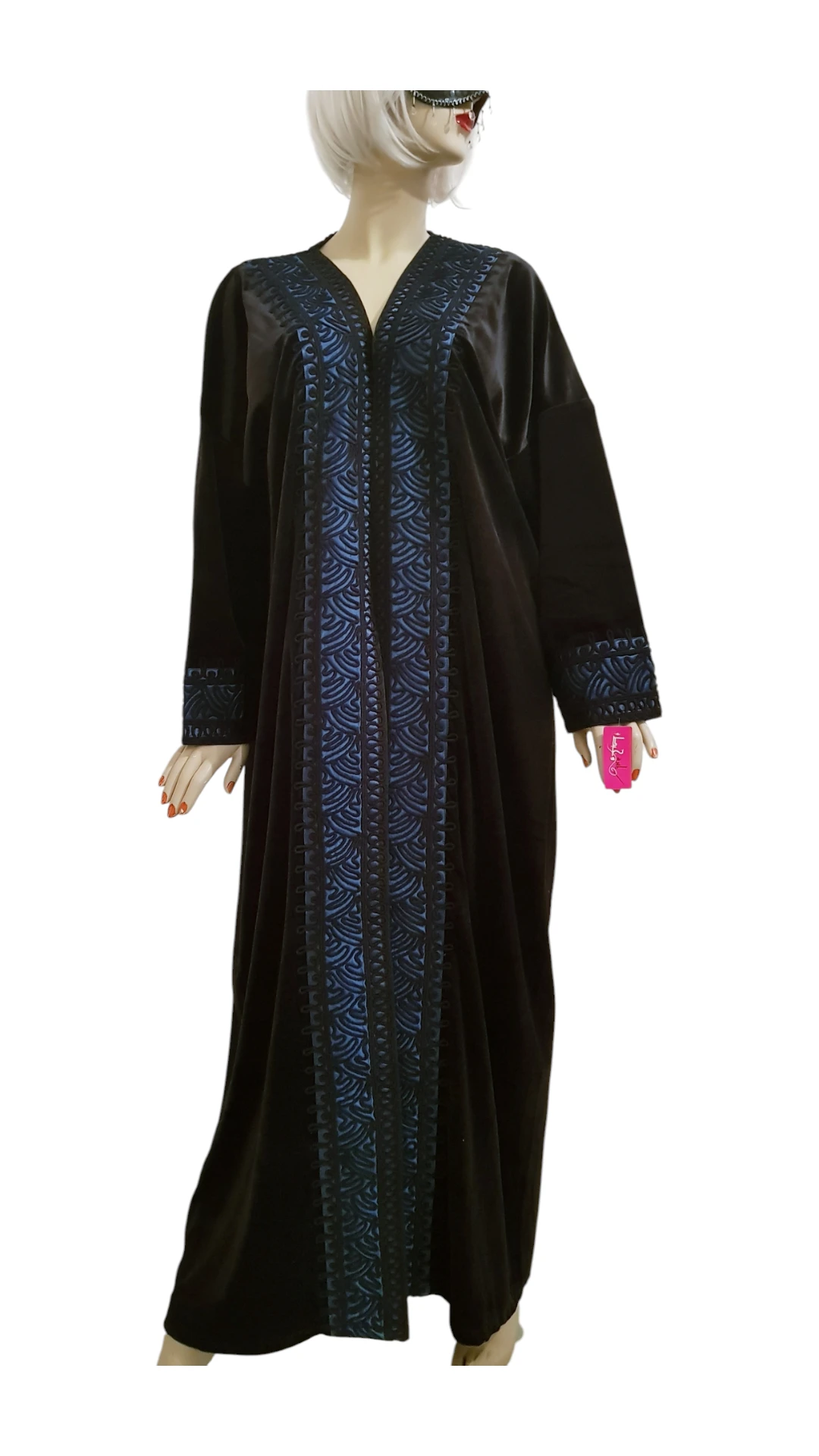 قفطاننا الأسود من قماش Maze Velvet مزين بتفاصيل جميلة من التطريز الشرقي
